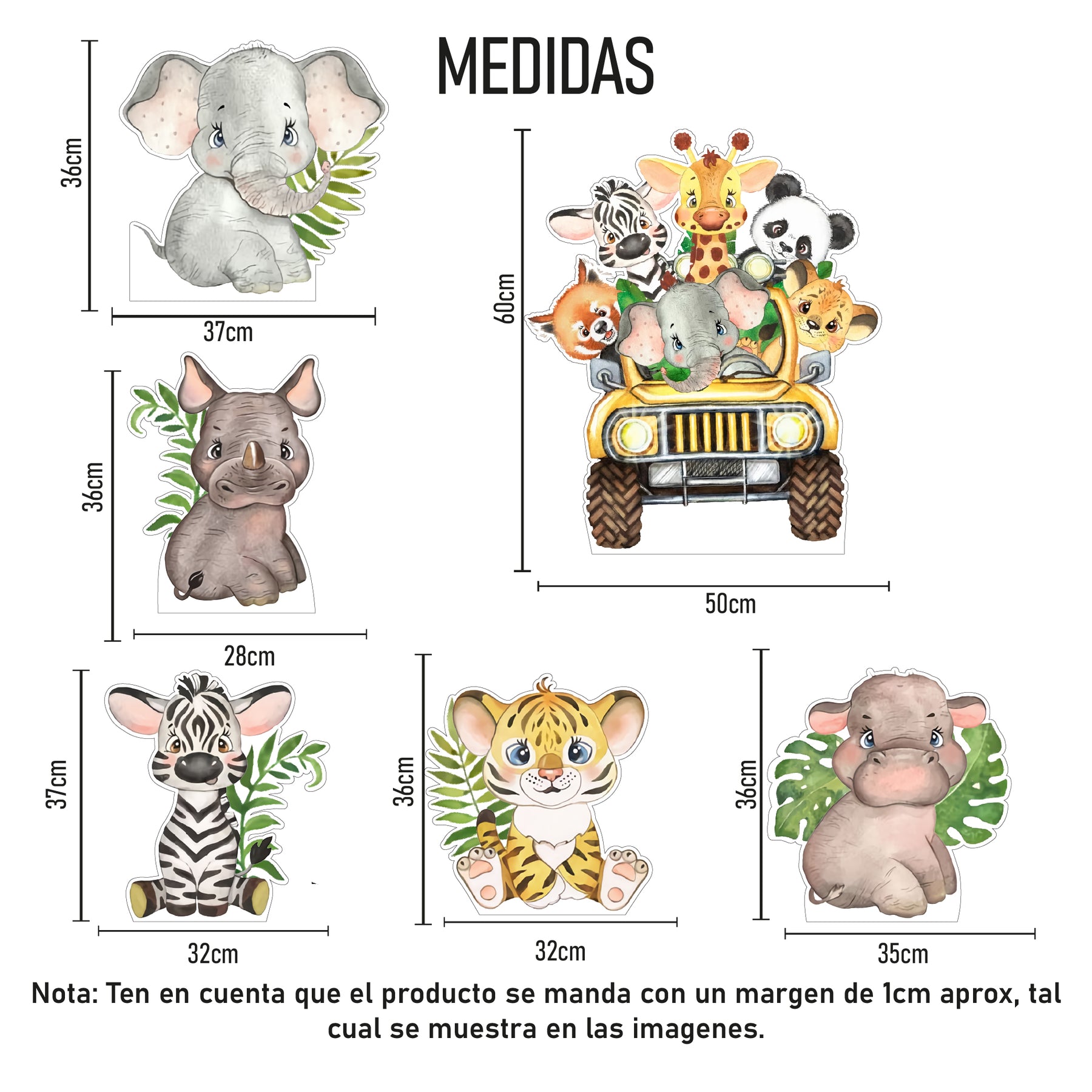 Este set incluye adorables animales como elefantes, tigres, jirafas, cebras y rinocerontes, diseñados para capturar la atención de los pequeños y llenar cualquier espacio de alegría. Son ideales para decorar fiestas de cumpleaños con temas de safari o jungla, habitaciones de juegos y rincones de lectura. ¡Crea un ambiente mágico que estimule la imaginación de los niños!
