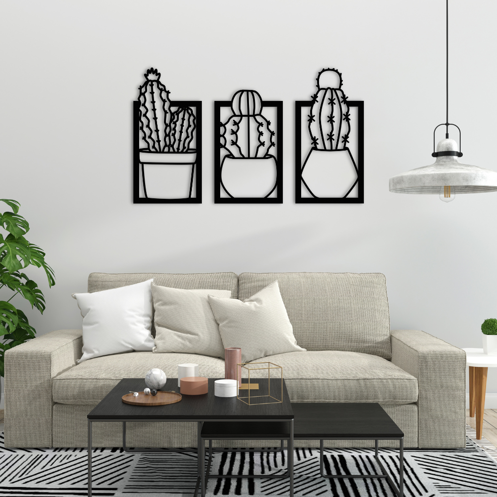 - Características: Juego de cuadros diferentes tamaños con temática de cactus. Nuestros cuadros inspirados en elementos de la naturaleza son hechos a mano, modernos e ideales para decorar cualquier espacio interior de tu consultorio dental, tu hogar y tu recámara. Estos cuadros decorativos te permiten una fácil instalación colocando un clavo en la pared (ya incluido).