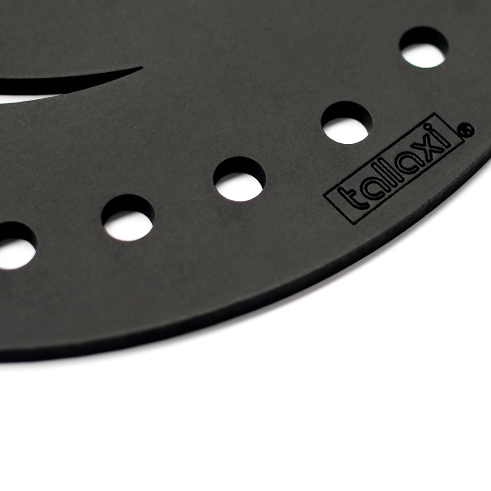 - Acabados: Nuestros cuadros, piezas y figuras de pared decorativas son elaborados de fibra de madera de densidad media. El terminado de las piezas está compuesto por 2 capas de pintura automotriz en color negro mate.