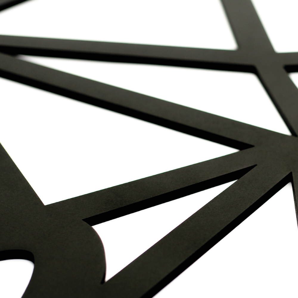 - Acabados: Nuestros cuadros, piezas y figuras de pared decorativas son elaborados de fibra de madera de densidad media. El terminado de las piezas está compuesto por 2 capas de pintura automotriz en color negro mate.
