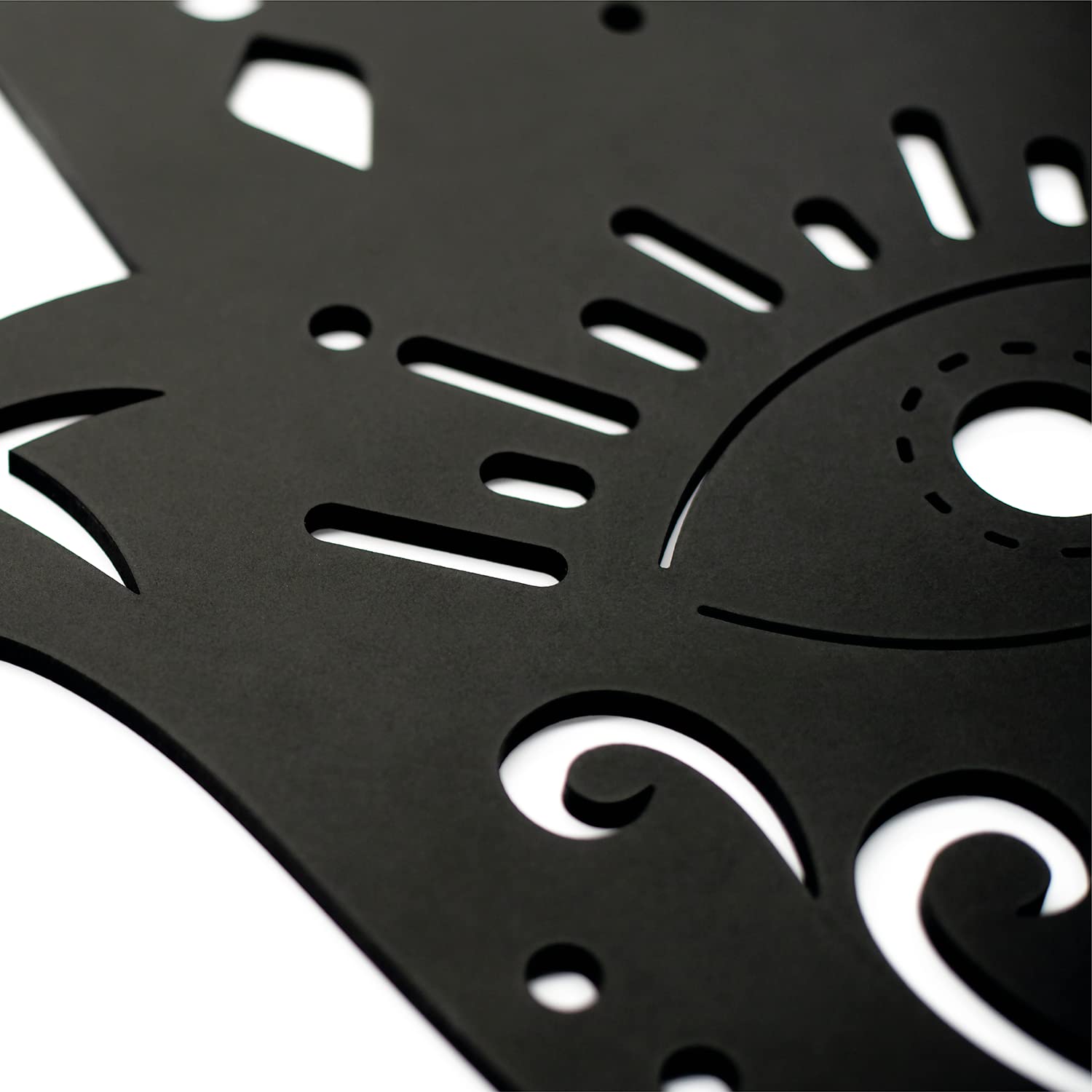 - Acabados: Nuestros cuadros, piezas y figuras de pared decorativas son elaborados de fibra de madera de densidad media. El terminado de las piezas está compuesto por 2 capas de pintura automotriz en color negro mate.