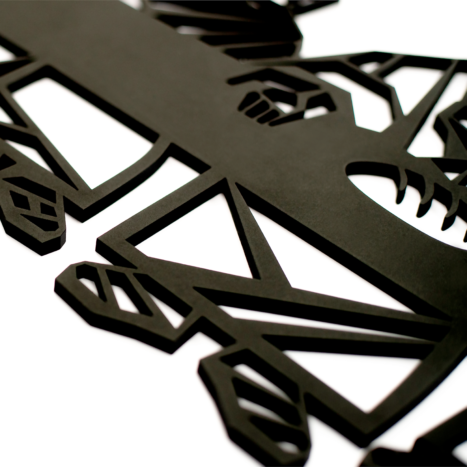 - Acabados: Nuestros cuadros, piezas y figuras de pared decorativas son elaborados de fibra de madera de densidad media. El terminado de las piezas está compuesto por 2 capas de pintura automotriz en color negro mate.